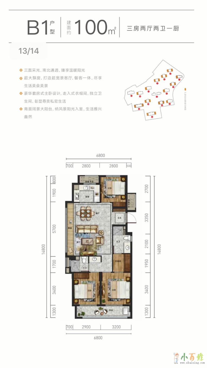 【商业配套】:项目东侧宝龙商业广场(规划),春天华府生活广场100米(开业),万华购物广场(开业)www.xbaixing.com