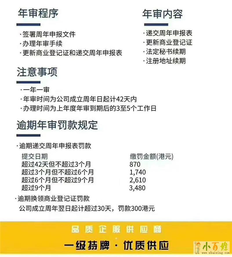 很多投资者注册完香港公司后,因为工作繁忙,忘记了公司年审的时间而造成不必要的麻烦,但是我司会提醒通知客户,这样就可以避免客户忘记公司年审的事项了www.xbaixing.com小百姓网。