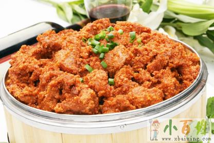 粉蒸肉是赣菜的一道菜品,可以根据烹饪方式可以偏辣,也可以偏甜,不同地域选择的配菜有差异,可以采用红薯、南瓜、莲藕、芋头、青豆等原文www.xbaixing.com。不过粉蒸肉在南方地区比较流行,不过现在不仅已经进军全国市场,也已经进入国际市场,成为了中国调味品的代表之作小~百~姓~网。南方很多地区在每年立夏和过年都是必须吃的传统菜x b a i x i n g c o m。
