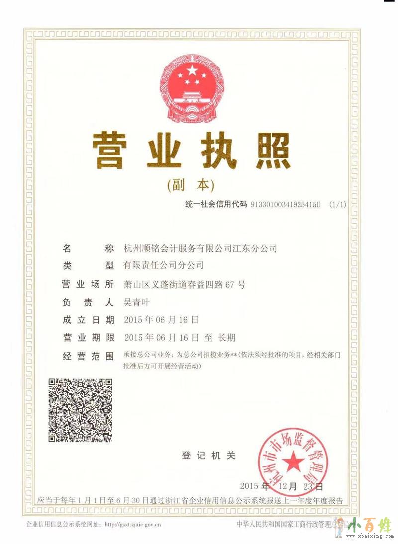 小 百 姓 网杭州顺铭会计服务有限公司,致力于为初创型小微企业提供优质的财务外包服务,从企业注册到企业纳税申报实行,不是仅仅申报记账,而是以规范高效的财务技能,合理节约您的成本! 来自www.xbaixing.com