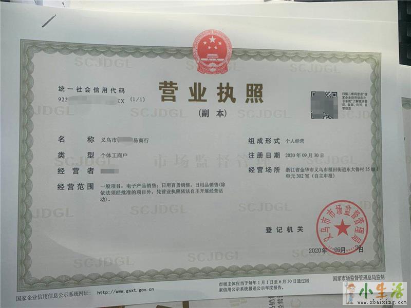 第二步,帮注册义乌执照,2-3工作日办好xbaixing.com
