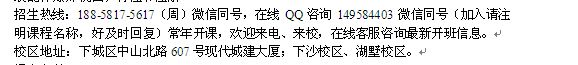招生热线:188-5817-5617(周)微信同号,在线QQ咨询149584403微信同号(加入请注明课程名称,好及时回复)常年开课,欢迎来电、来校,在线客服咨询最新开班信息。