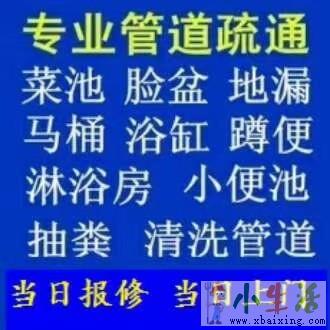 6、 疏通面盆:疏通各种型号的面盆,包括V型弯和S型弯的各种管道www.xbaixing.com。