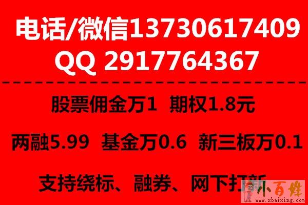 股票开户x.b.a.i.x.i.n.g.c.o.m 佣金万1 期权1.8一张 两融5.99 新三板万0.1