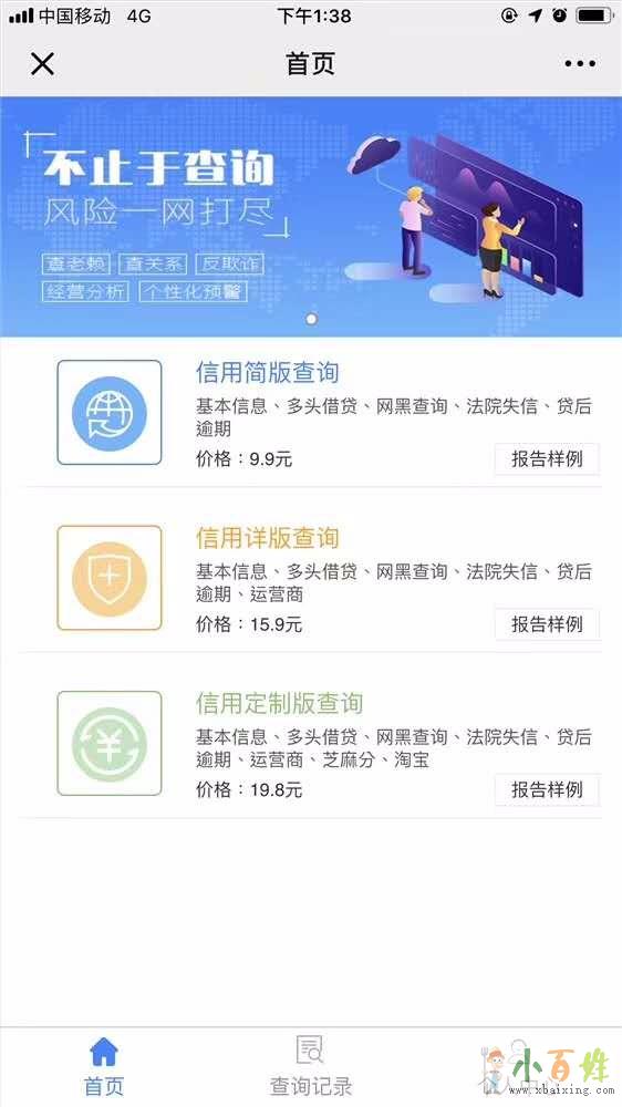 结合线上、线下海量数据构建信用风险体系,同时整合产业内外优质数据源,涵盖了反欺诈、黑名单、信用评级、贷后监控等综合服务,系统还具有风险动态管理、贷后预警功能小百姓网www.xbaixing.com。