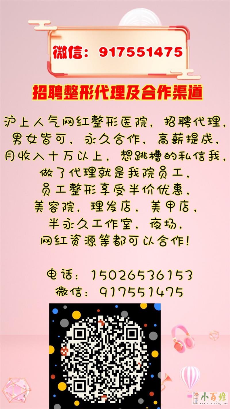 沪上网红整形医院,招整形代理,男女皆可,永久合作,高薪提成,月收入十万以上,想跳槽的私信我,www.xbaixing.com