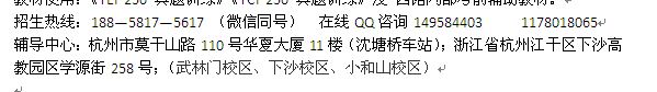 辅导中心:杭州市莫干山路110号华夏大厦11楼(沈塘桥车站);浙江省杭州江干区下沙高教园区学源街258号;(武林门校区、下沙校区、小和山校区)