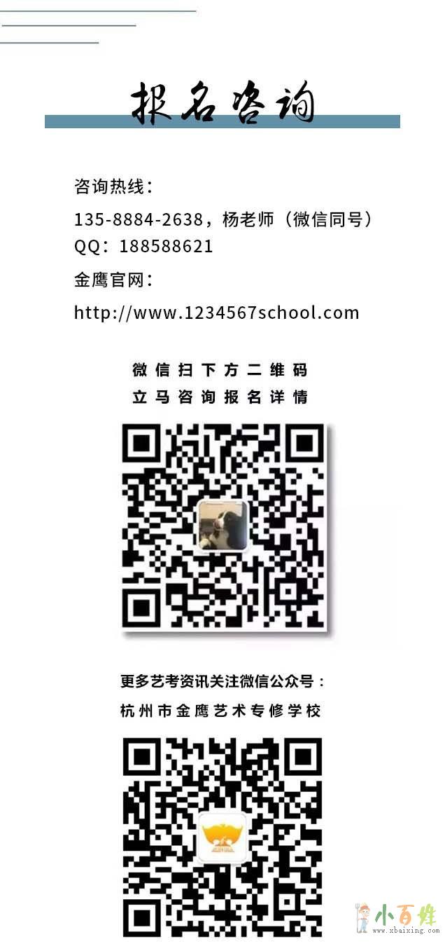 在金鹰艺术专修学校,考生只需专注学习小_百_姓_网。平时,金鹰老师全程跟进浙江音乐学院的考试信息,以便每位学员都能及时了解和掌握考试内容。浙音校考前,由金鹰专业老师根据学员的情况及意愿提出合理选择专业的建议,并指导学员报考浙江音乐学院的校考;浙音校考时,金鹰教师全程陪考,让学员安心考试,顺利取得校考合格证;浙音校考后,指导学员填报志愿,讲解录取、调剂等相关方面问题,大大提高学员的录取率!