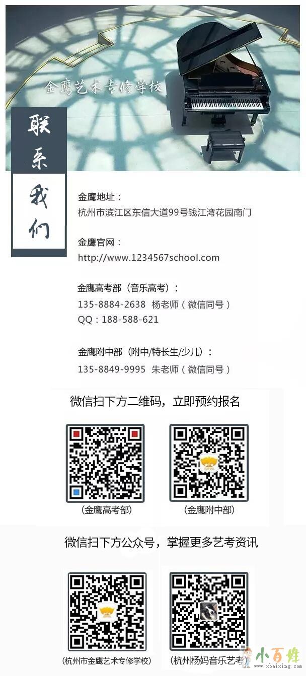 2020年杭州金鹰艺术特长生A级寒假培训班招生中!中高考恰似千军万马过独木桥,所以让孩子平时学学音乐、舞蹈的家长也是非常有远见的小_百_姓_网。这不,每年一度的艺术特长生A级测试即将开始,通过浙江省特长生A级测试,对孩子以后考中学、考大学都起着重要的作用原文www.xbaixing.com。如果您的孩子有音乐舞蹈的特长,那自然是不容错过小 百 姓 网。