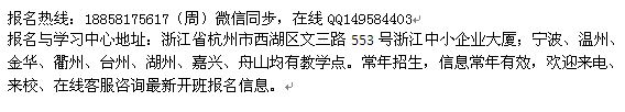 报名与学习中心地址:浙江省杭州市西湖区文三路553号浙江中小企业大厦;宁波、温州、金华、衢州、台州、湖州、嘉兴、舟山均有教学点。常年招生,信息常年有效,欢迎来电、来校、在线客服咨询最新开班报名信息TSR。