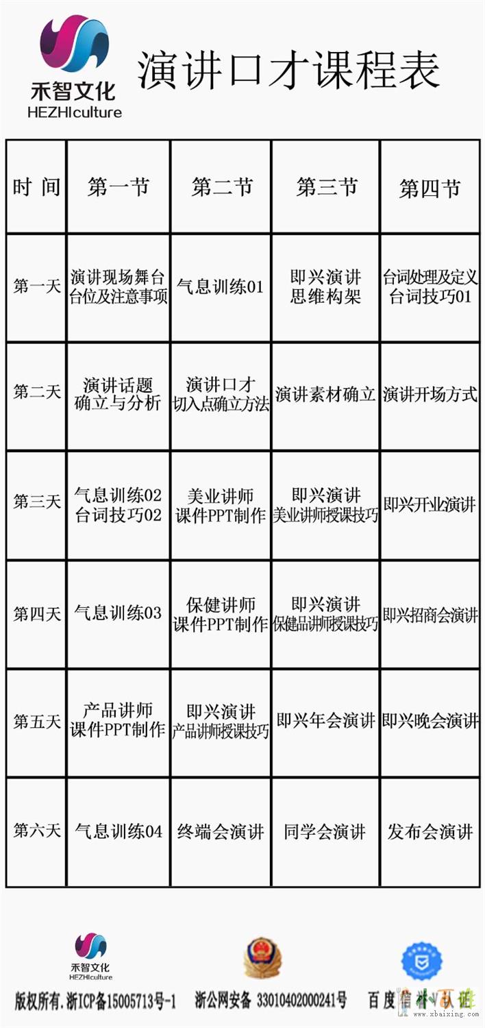 开设课程:当众讲话、演讲艺术、领导力口才、说服力销售口才、科学发声、逻辑思维、影响力导师班等锻炼提升好口才。 一、适用人群 在会议上不敢发言,错过晋升机会而烦恼。 在工作汇报中条理不够清晰没有得到重用...