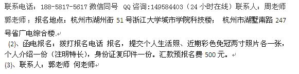 联系电话:188-5817-5617微信同号 QQ咨询:149584403(24小时在线)联系人:周老师 郭老师 ;报名地点:杭州市湖州街51号浙江大学城市学院科技楼; 杭州市湖墅南路247号省广电综合楼.