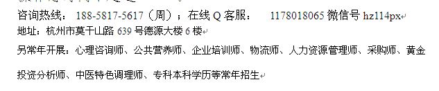 另常年开展:心理咨询师、公共营养师、企业培训师、物流师、人力资源管理师、采购师、黄金投资分析师、中医特色调理师、专科本科学历等常年招生