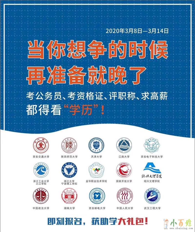 在线预约成功的学员,报名时可享受400元助学金 学历永远是您迈向成功的敲门砖,助您实现未来的梦想。 招生院校:浙江理工大学,浙江工商大学,温州大学,浙江农林大学,宁波大学,中国计量大学等 热门专业:土...