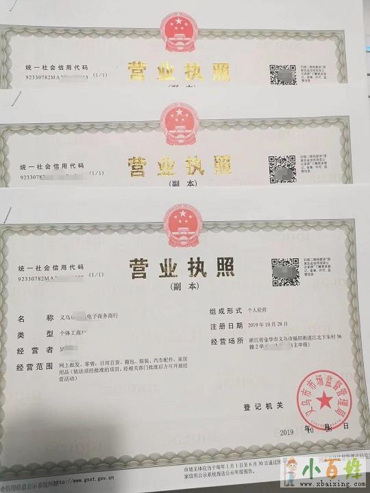 2.个体户名称,一般为工商随机,格式为义乌**电子商务商行