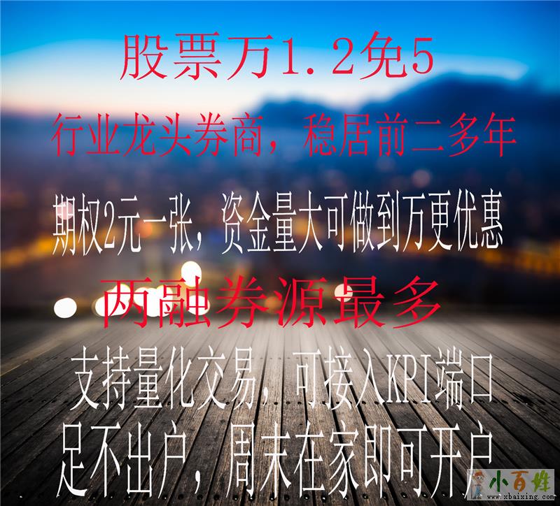 股票佣金低至万1.5,最低万1.2(含融资融券账户)节约交易成本!周末可开户,量大万1!