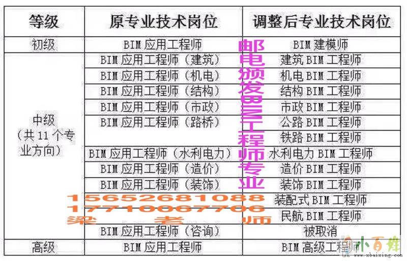 专业设置:初级:BIM建模师(不分专业) 中级:BIM建筑工程师,BIM结构工程师,BIM机电工程师,BIM市政工程师,BIM路桥工程师,BIM装饰工程师,BIM咨询工程师,BIM水利水电工程师,高级:BIM工程师(不分专业)