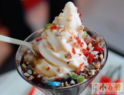 冰淇淋(ice cream),是以饮用水、牛奶、奶粉、奶油(或植物油脂)、食糖等为主要原料,加入适量食品添加剂,经混合、灭菌、均质、老化、凝冻、硬化等工艺而制成的体积膨胀的冷冻食品,口感细腻、柔滑、清凉www.xbaixing.com小百姓网。