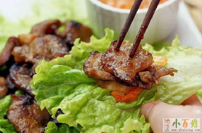韩国烤肉是韩国料理中的一道大菜。韩国烤肉主要以牛肉为主,如牛里脊,牛排,牛舌,牛腰等。还有海鲜,生鱼片等都是韩国烧烤的美味,但是尤以烤牛里脊和烤牛排最有名,因为其肉质最鲜美爽嫩。韩国烤肉吃法有别于中国烤肉和巴西烤肉,其吃法很特别,吃烤肉的时候要包着生菜吃,通常是在手里摊开生菜叶,也可以重叠地铺上苏子叶,夹一块儿烤肉,抹一点儿韩国的辣酱,也可以放上泡菜和米饭,最后收拢菜叶,裹成一团即可食用,生菜叶的清爽,烤肉和着辣酱等作料的浓香,使人们享受美食带来的快感。QrO
