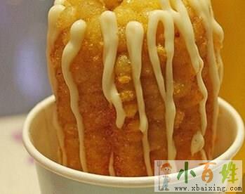 脆皮玉米是一种2014年兴起的美味食物,也称为台湾烤玉米 小.百.姓.网。发源于台湾 ,后传入重庆,在重庆发展向了全国。脆皮玉米采用中原地区所独有的脆甜玉米改良制作。主要食材是初秋新鲜玉米和新鲜的鸡蛋液,配上番茄酱,黑胡椒酱,奶油等,玉米薯薯脆皮玉米口感脆嫩,同时又拥有独特的香甜,二者巧妙融合,叫人无法抗拒,是一种火爆的街边小吃。