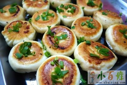 4、生煎包的烹饪方法就是用半煎半蒸的方式使包子熟成,在煎包子时淋水就是利用水汽加快熟成的速度,并确保熟透。