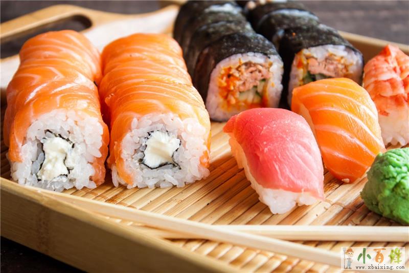 寿司是在饭里放醋做主材料的日本料理,味道鲜美,很受日本民众的喜爱www.xbaixing.com小百姓网。寿司和其他日本料理一样,色彩非常鲜明。制作时,把新鲜的海胆黄、鲍鱼、牡丹虾、扇贝、