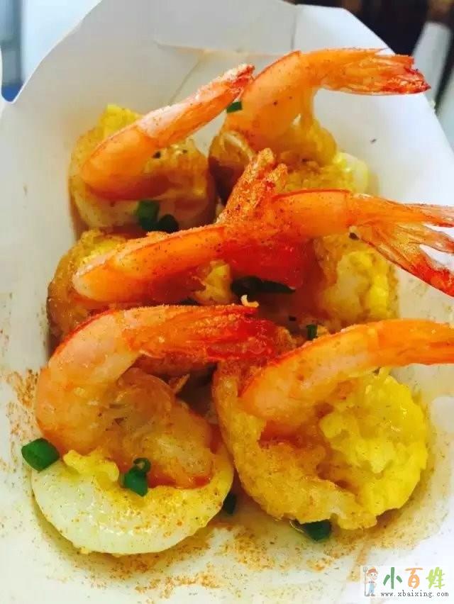 虾扯蛋作为台湾夜市上十大小吃之一,以前只是听说过但一直无缘吃到。在美食节终于见到了这个台湾夜市爆款小吃,外表非常诱人,它的美味简直不予伦比。将虾扯蛋的美味都在里面重现,最重要让你好吃到停不下来的感觉,整只虾都被蛋包裹着,要吃的时候只要轻轻拿起虾尾就可以品尝了x~b~a~i~x~i~n~g~c~o~m。