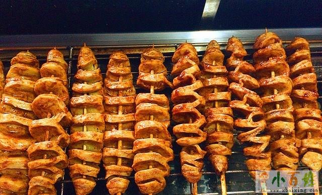 烤面筋是一种传统特色小吃,具有香辣味、孜然味等口味x.b.a.i.x.i.n.g.c.o.m。主要是将面筋制作成螺旋状坯料,放置于炭火上进行烘烤,撒上调料、酱汁即成。